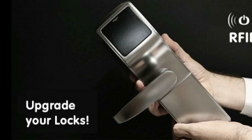 1986年 , 第一代電子鎖系統(mag-stripe)磁卡鎖。